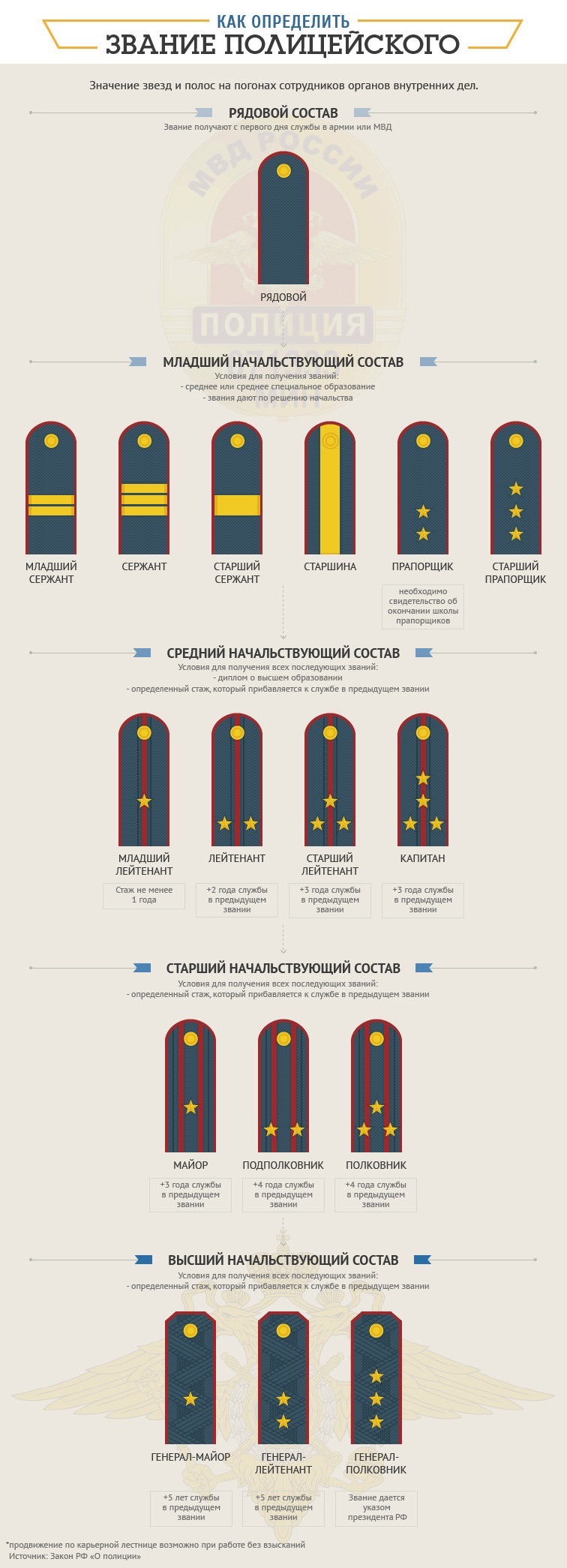 Здесь вы можете ознакомиться с тем, как определить звания МВД РФ, эти звания использует абсолютное большинство силовых ведомств РФ